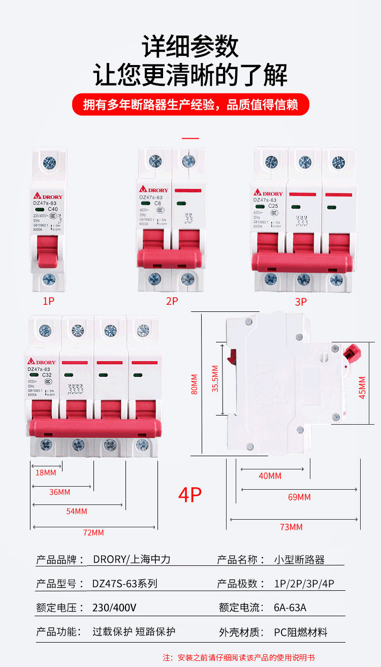 DZ47-63; TGC1s-63; 1P~4P 6A~63A小型断路器系列