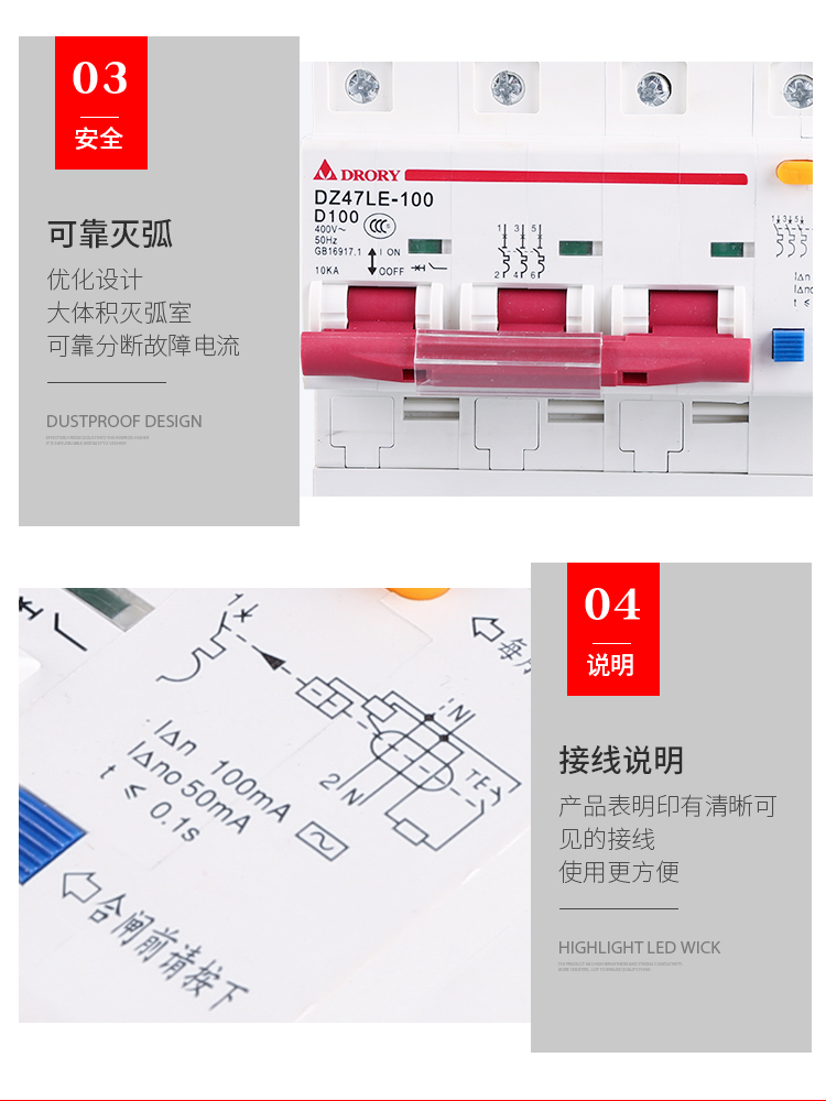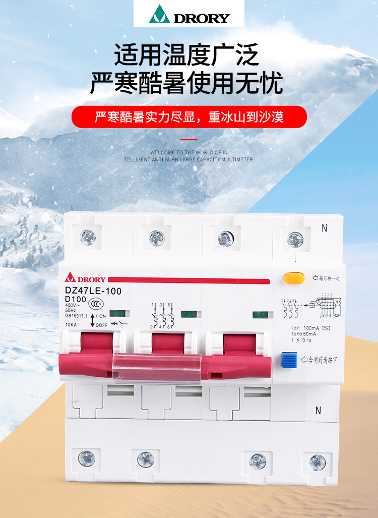 DRM1LE-100型~800型; 3P~4P 63A~800A漏电断路器系列