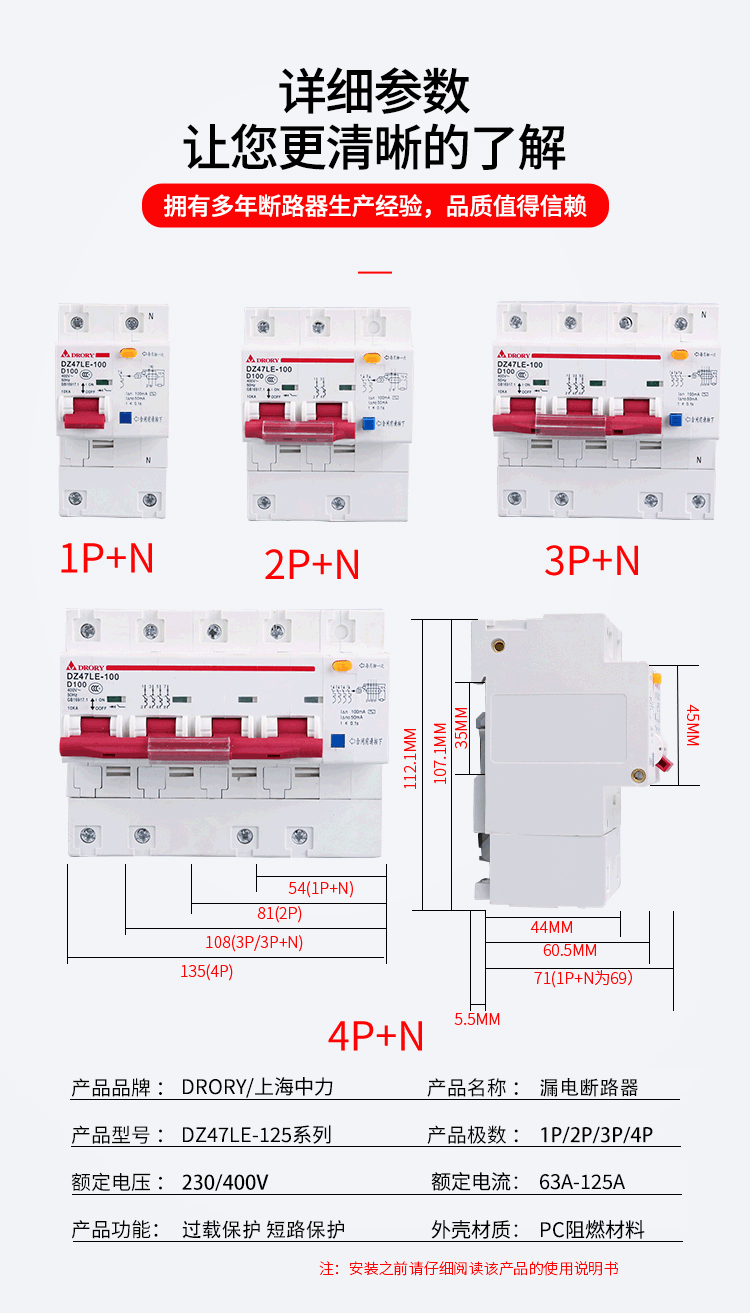 DZ47LE-125; TGC1LE-125; 1P~4P 63A~125A漏电断路器系列