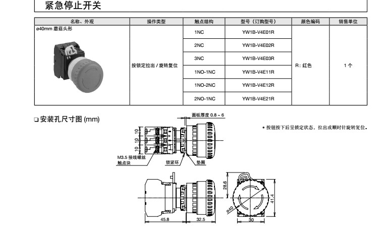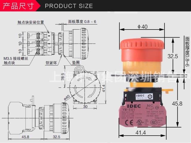 全新原装IDEC和泉急停按钮开关YW1B-V4E01R一常闭22孔径YW-E01现