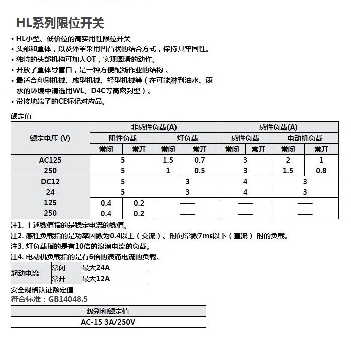 HL系列行程开关HL-5000 5030 5300 5100 5200 5300