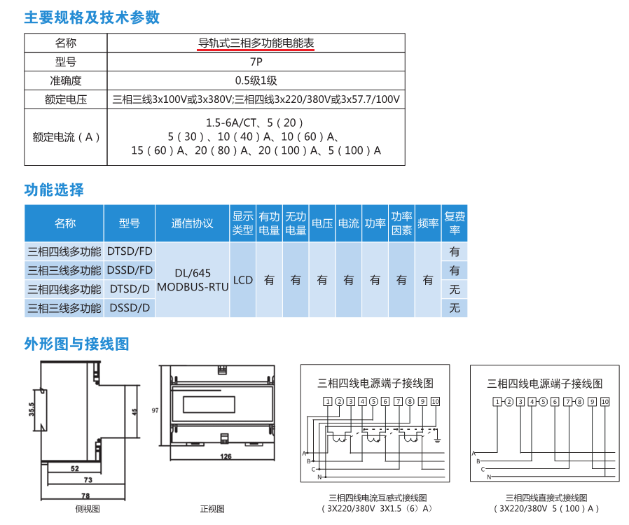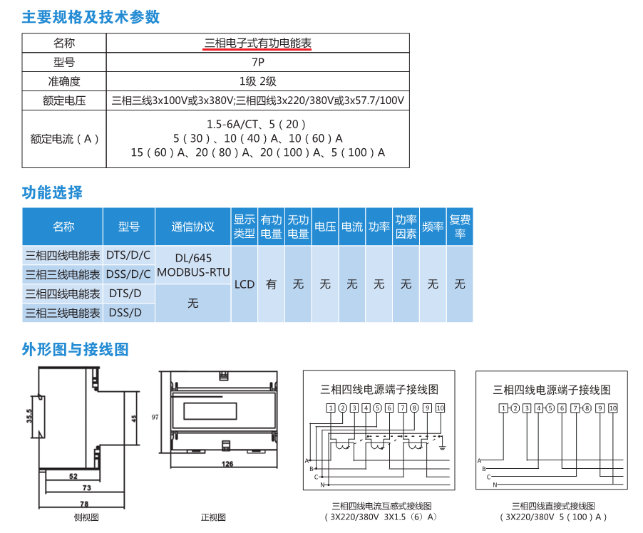 DTS844, DDS8666; 电流: 1.5A-100A三相四线电子式电能表系列