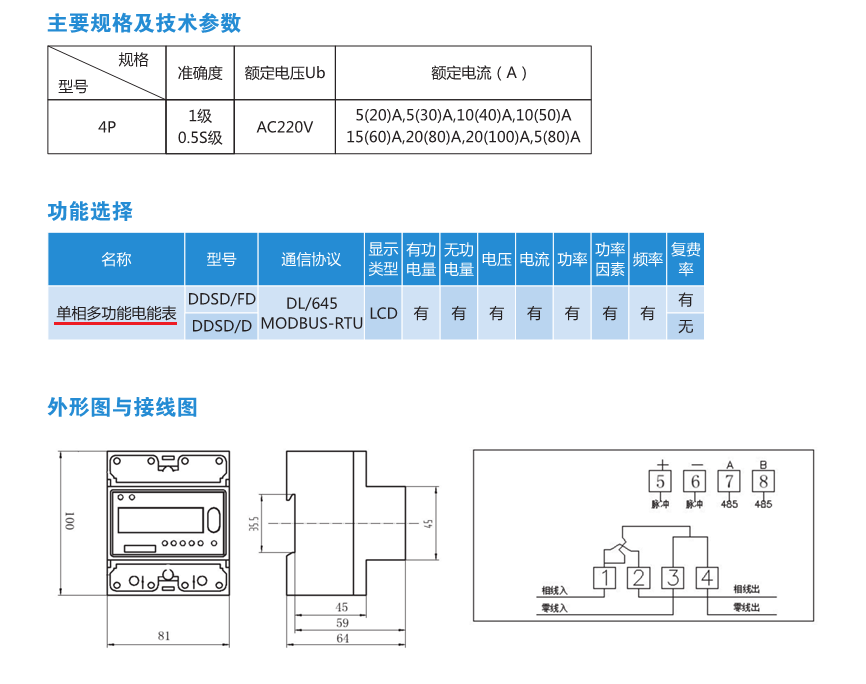 DDSY844, DDSY8666; 电流: 2.5A-100A单相预付费电能表系列