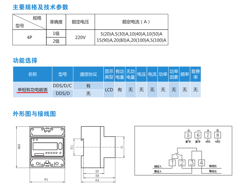 DDS844,DDS8666;电流:2.5A-100A 单相电能表系列
