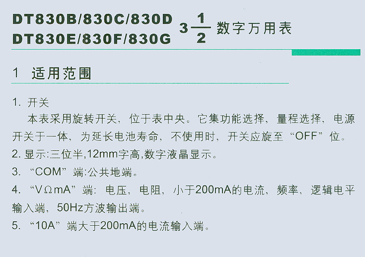 DT830B/830C/830D、DT830E/830F/830数字万用表