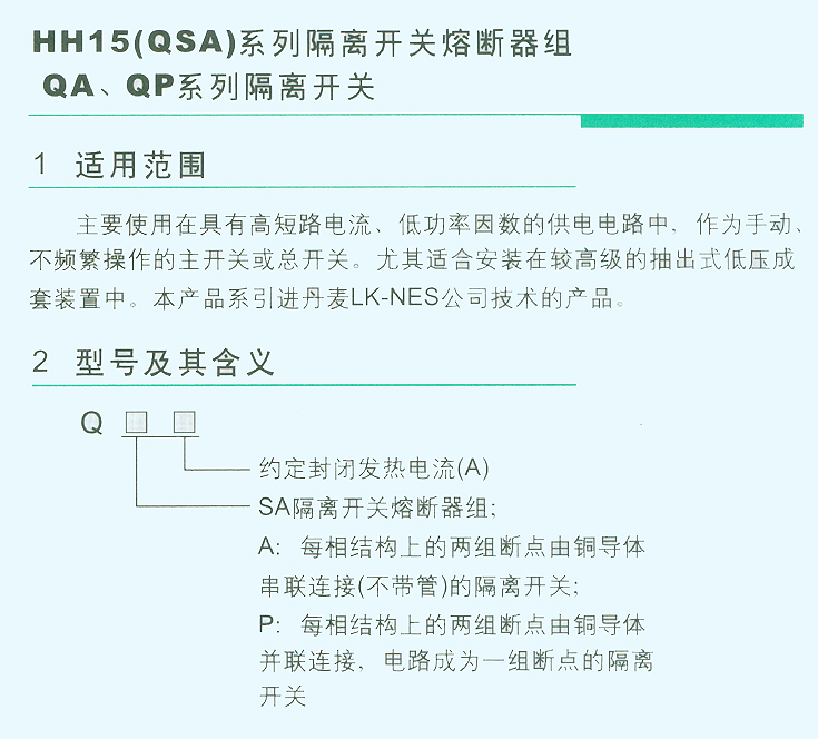 HH15(QSA)系列隔离开关熔断器组 QA、QP系列隔离开关
