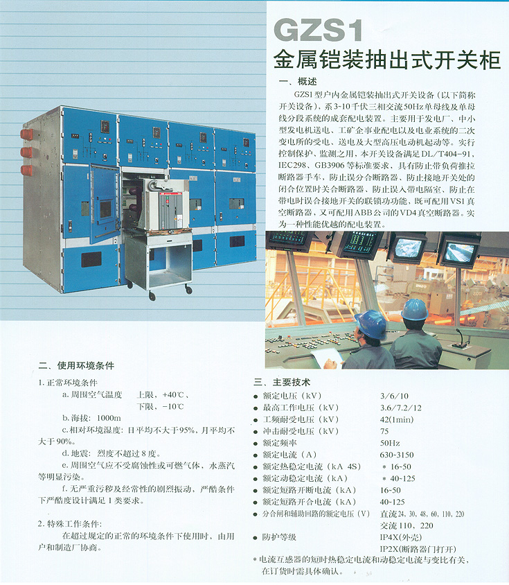 GZS1金属铠装抽出式开关柜