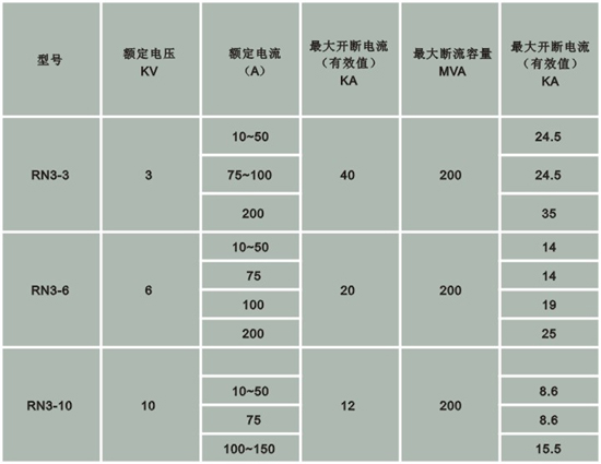 负荷开关所配带的熔断器型号及数据