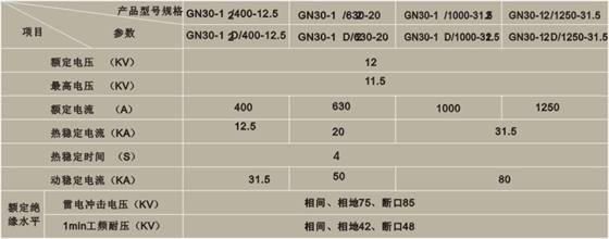 GN30-12D型开关是在GN30-12型开关基础上增加带接地刀的形式,可满足不同电力系统的需要。本产品设计紧凑、占用空间小、绝缘能力强、易于安装调整,其性能符合GB1985-89《交流高压隔离开关和接地开关》的要求,适用于额定电压10KV交流50Hz及以下户内电力系统中,作为在有电压无负载情况下,分合电路之用。可与高压开关柜配套使用,也可单独使用。