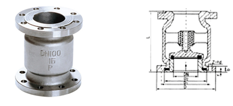 本系列阀门正常处于关闭状态,由于管线中进口端介质的压力作用,而克服弹簧阻力使阀门开启。当进口端介质压力低于出口端时,弹簧将阀芯推向阀座而使阀门关闭,阻止介质逆流,故起止回作用。 本阀门由于采用弹簧支撑阀芯,故采用立式安装或卧式装均可。