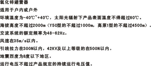 概 述 该种产品采用硅橡胶作为绝缘外套,是国内外用于绝缘子及避雷器外套最先进的材料。该类产品的主要特点是体积小、重量轻、可悬挂、防爆性好、防水性强、耐污性及抗老性能优越。不易受潮,密封性能远远优于瓷套避雷器,并且密实的结构改善了散热特性,保证了避雷器的长期稳定工作,且运输、安装不破损。除以上优点外,本厂生产的该种避雷器,内站采用了不同介电常数的绝级材料多层绝缘配合的新型结构,从而优化了电阻片边角的绝缘结构,改善了电场分布,提高了大电流的耐受能力,使本产品更具有稳定性和可靠性。 正常使用条件