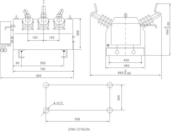 - ZW6-12/630-16(20) 型 户外真空断路器