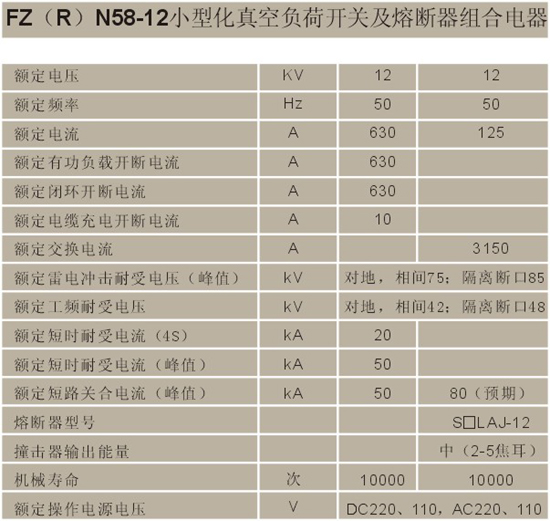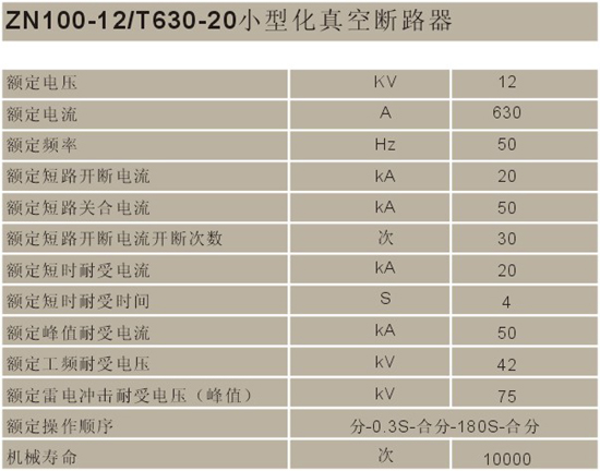 | 真空断路器 负荷开关技术参数 |