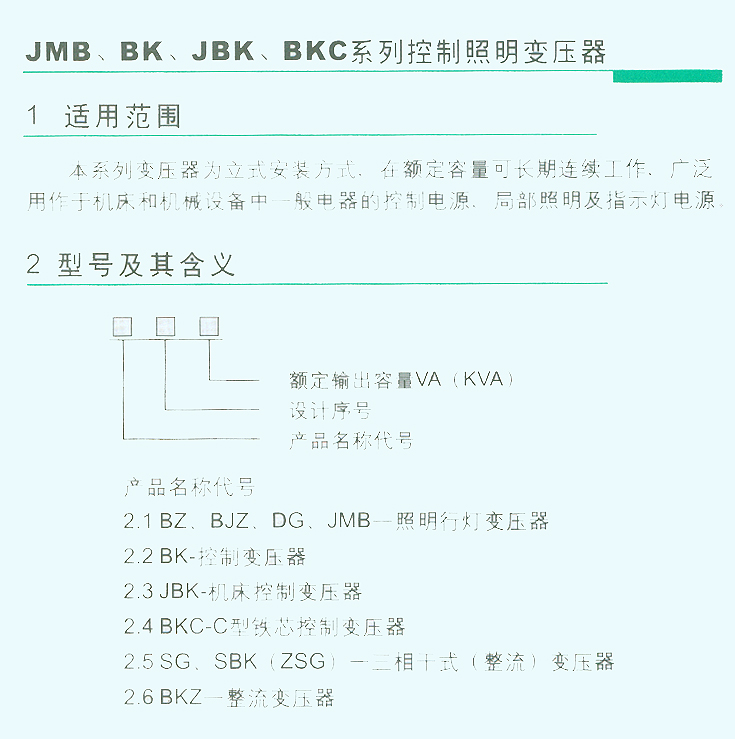 JMB、BK、JBK、BKC系列控制照明变压器