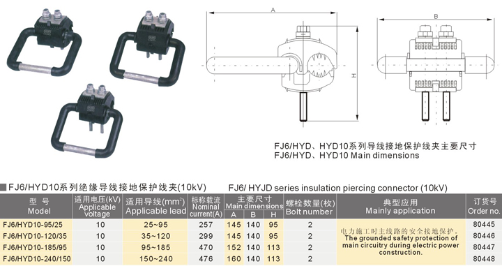 FJ6/HYD10系列绝缘导线接地保护线夹(10kV)