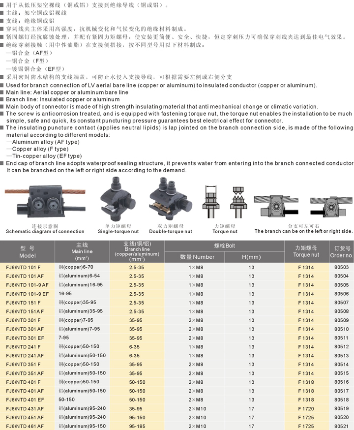 FJ6/TTD 80系列分步式多支接绝缘穿刺线夹