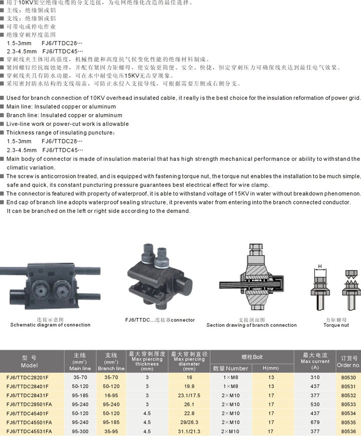 FJ6/TTDC系列绝缘穿刺线夹