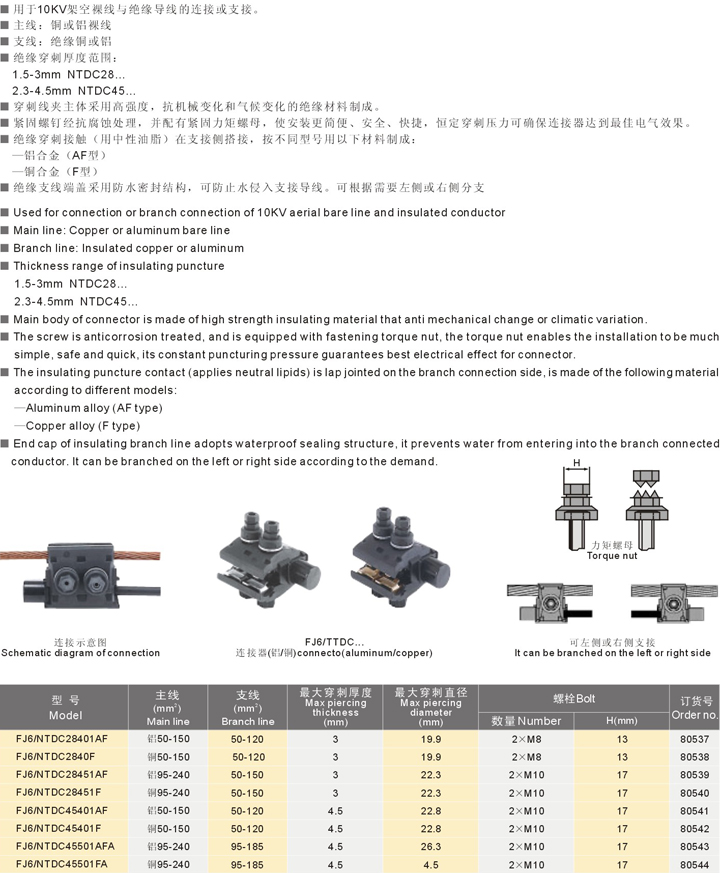 FJ6/TTDC系列短路绝缘穿刺线夹