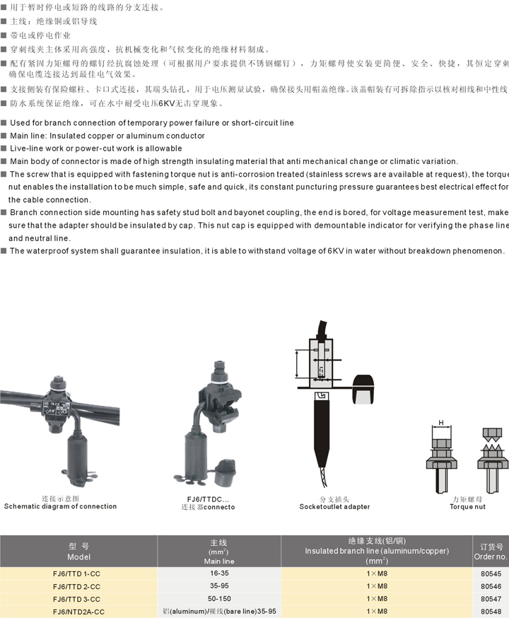 FJ6/TTDC系列短路绝缘穿刺线夹