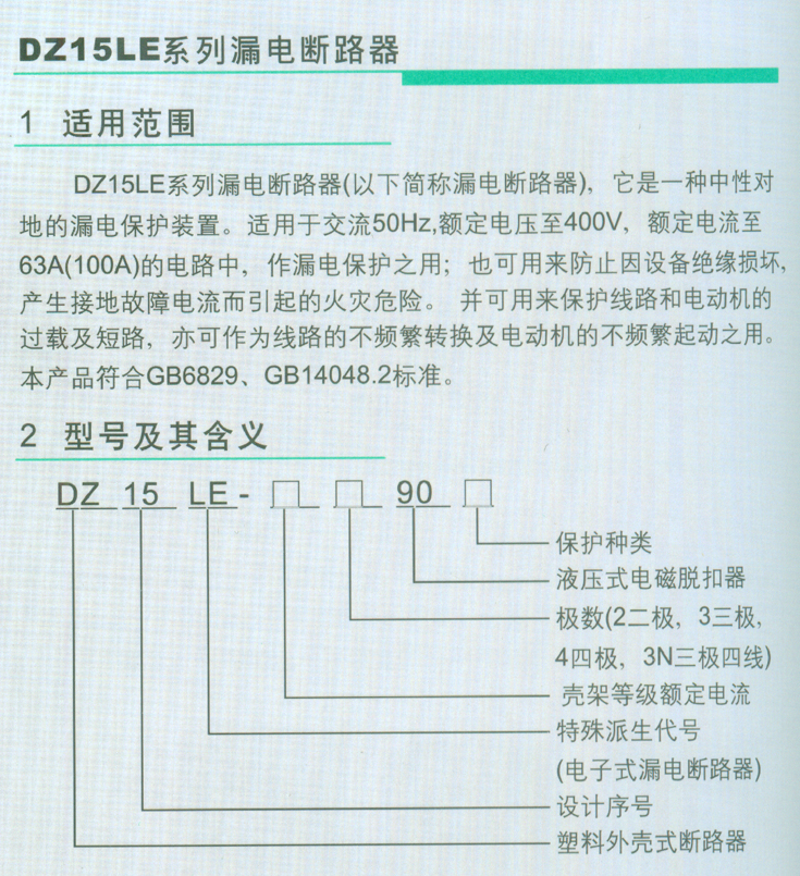 DZ15LE系列漏电断路器
