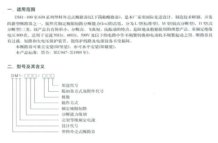 DM1(CM1)系列塑料外壳式断路器