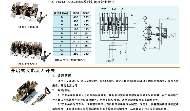 HD11B~17B、HS11B~17B、HD11FA、HD11F系列开启式刀开关