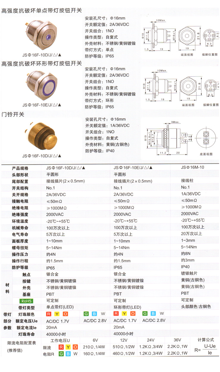 JSΦ16带灯按钮开关-门铃开关