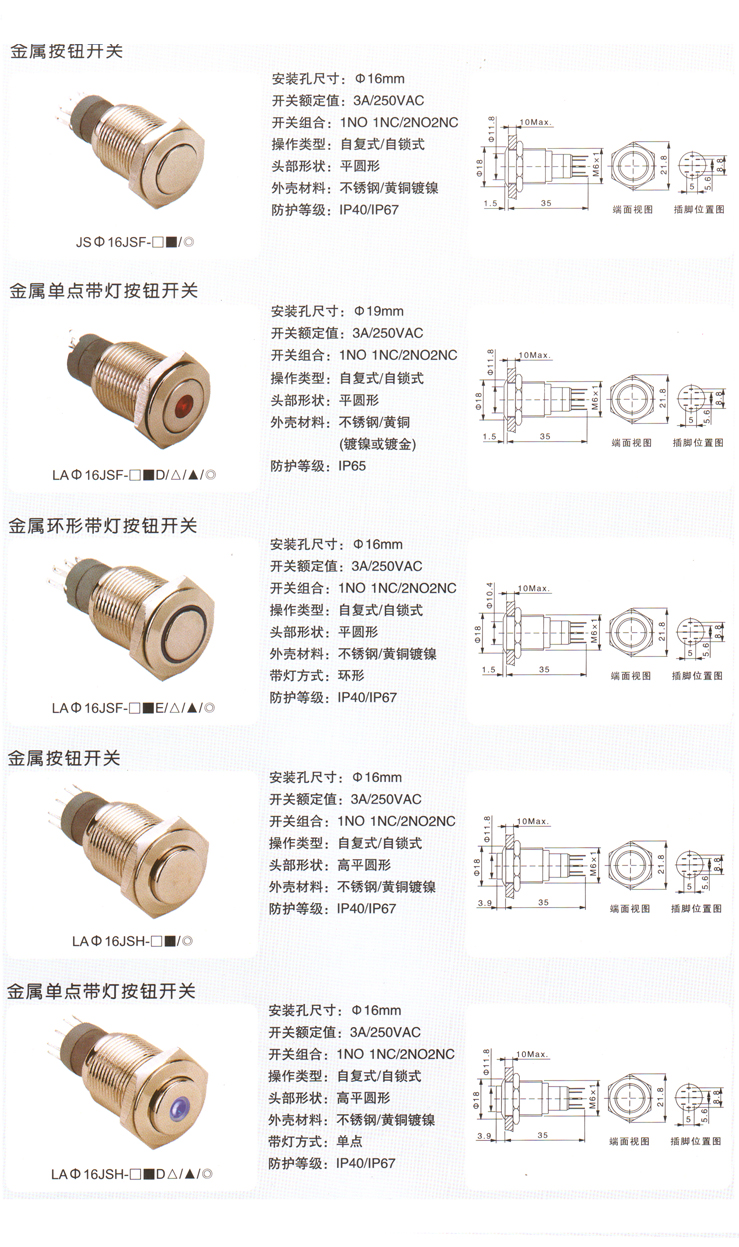 LAΦ16JS带灯按钮开关