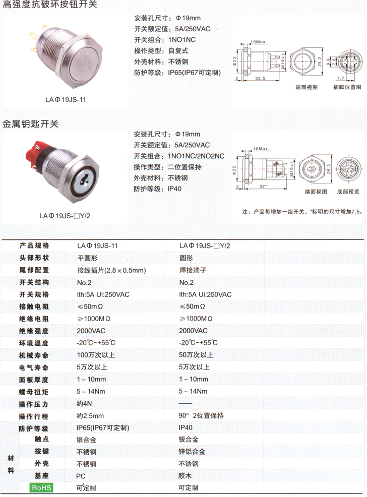 LAΦ19JS金属钥匙开关